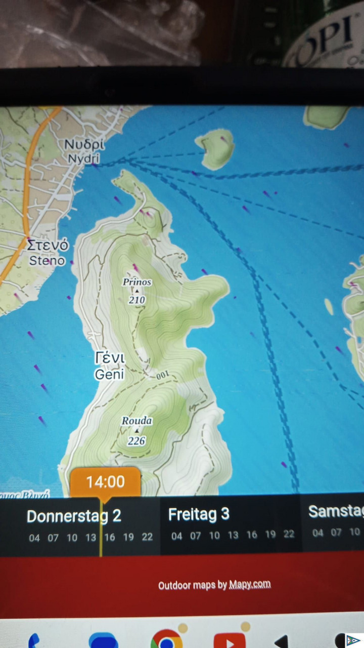 Hallo Carlo sind in der Bucht franzia beach for Anker haben eine Wind oder Wetterwarnung bekommen wollten eigentlich niedrig anlaufen die haben uns aber nicht angenommen und damit haben wir uns jetzt eine Buch gesucht in der wir hoffentlich heute Nacht überstehen.