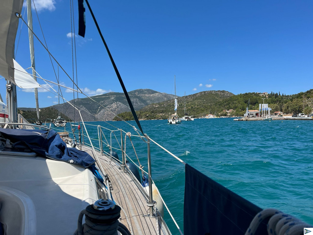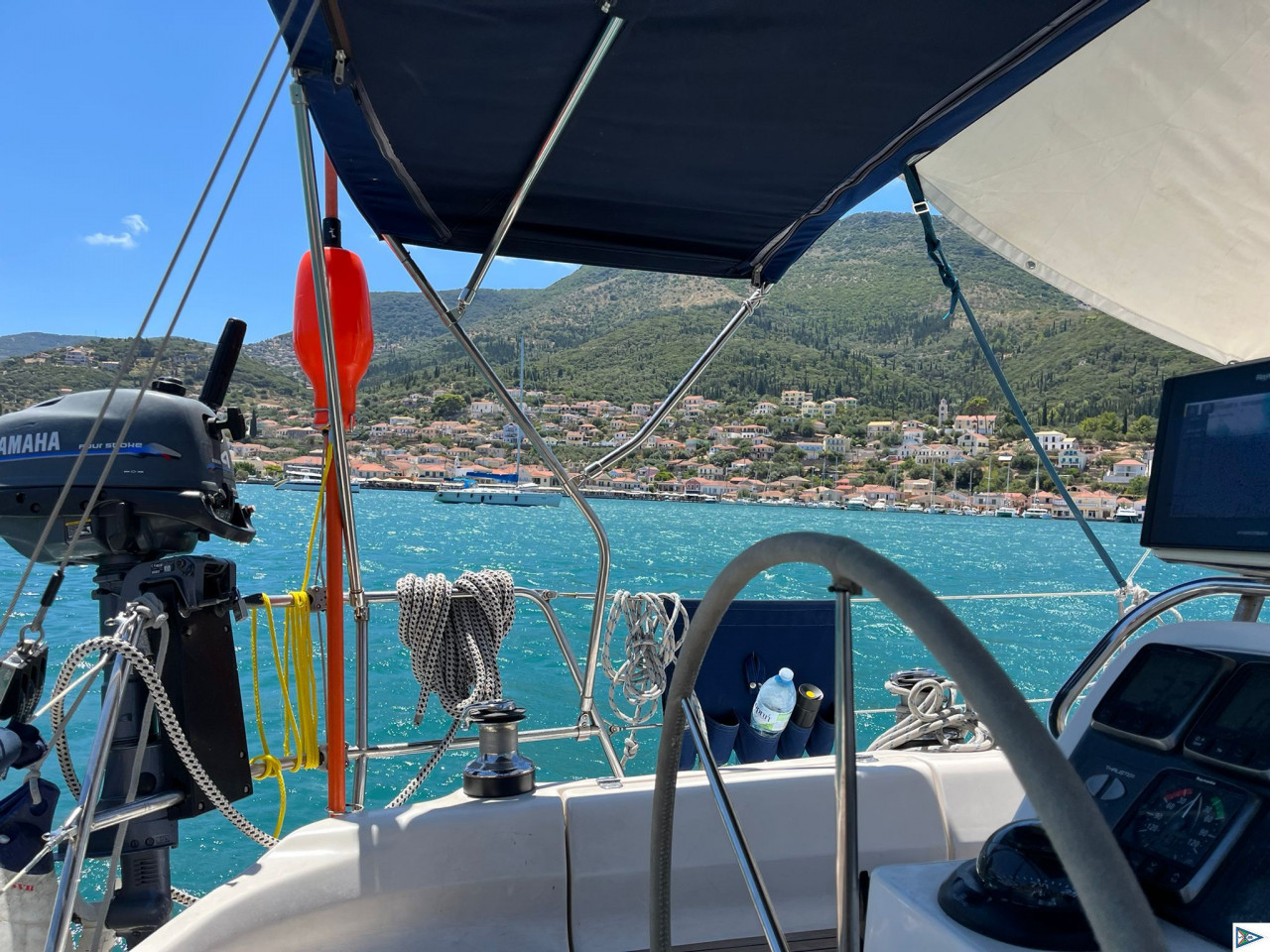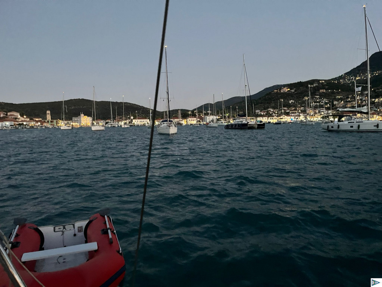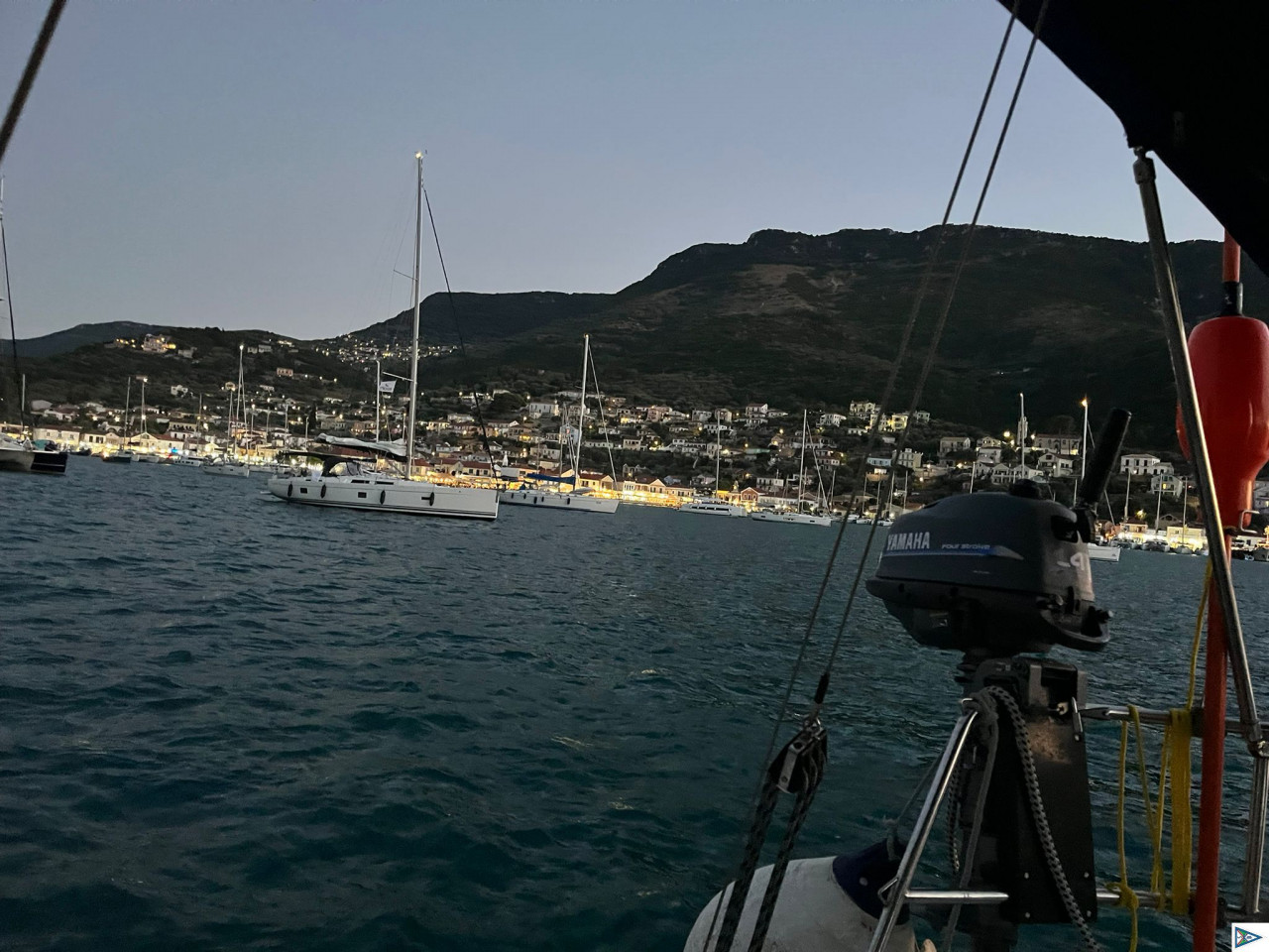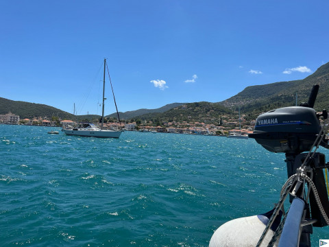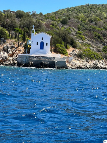 Moin Karlo, heute eine schöne Bucht auf Ithaka gefunden, leider hielt der Anker im Seegras nicht. Also wieder raus. Per Telefon in Vathi einen Platz klar gemacht, aber als wir dann in der Bucht waren, war keiner mehr zu erreichen. Also haben wir in der Bucht vor der Stadt den Anker geworfen, bei rund 3,5 m, was hier schon außergewöhnlich flach ist.