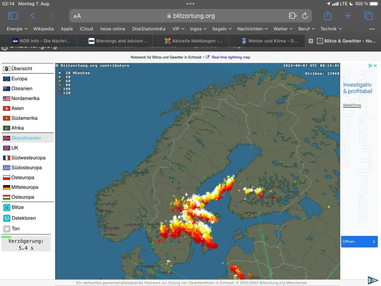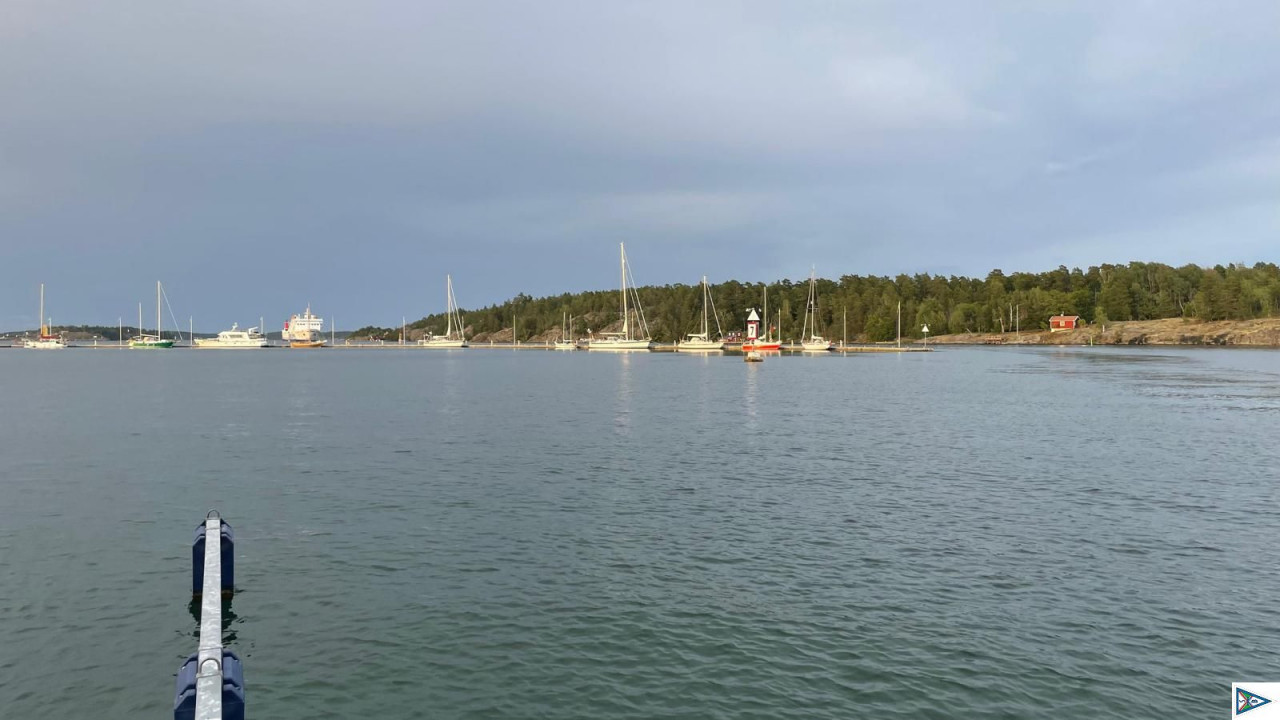 Dalarö war eine gute Entscheidung. Ruhiger Liegeplatz im Lee der Insel. Mehrfach Gewitter mit Schauerböen nachts.